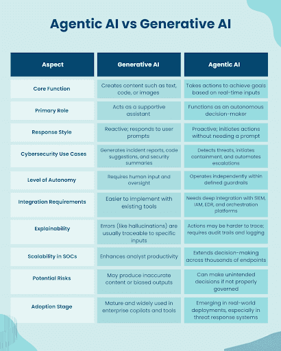 As we move forward, understanding what is agentic AI vs generative AI isn’t just academic, it’s essential for building secure, scalable, and autonomous cyber defense strategies.
