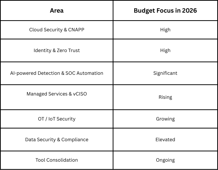 The Cybersecurity budget 2026 is clearly shifting toward strategic, high-impact areas, ensuring organizations are prepared for both current and emerging threats.